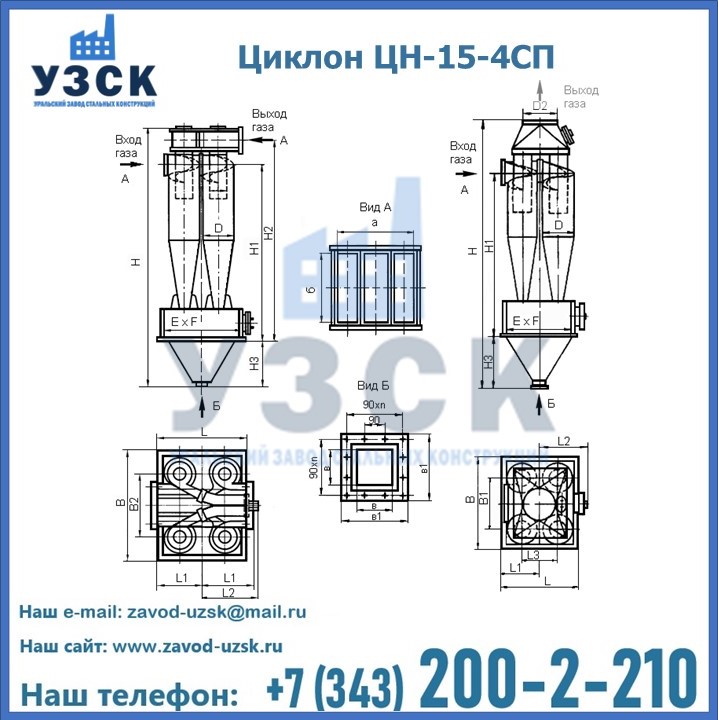 Завод «УЗСК» в Темиртау предлагает большой выбор циклонов ЦН-15-800×4СП и прочих устройств, полностью укомплектованных и готовых к эксплуатации. Мы гарантируем соответствие оборудования всем требованиям ГОСТ и ТУ, износостойкость и высокую производительность предлагаемого оборудования. Уральский Завод Стальных Конструкций изготавливает и продает надежное, эффективное и производительное оборудование, имеющее длительную гарантию и большой эксплуатационный ресурс. Если требуется изготовить циклон нестандартных размеров, то такой вариант выполнения заказа тоже предусмотрен, так как предприятие имеет собственные производственные площади и надежных поставщиков. На все поставляемое или производимое оборудование имеются чертежи и прочая техническая документация. Заказать и купить циклоны или прочее оборудование высокого качества и по доступной цене можно через наш сайт или по указанному в разделе «Контакты» телефону.