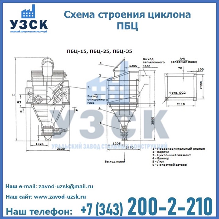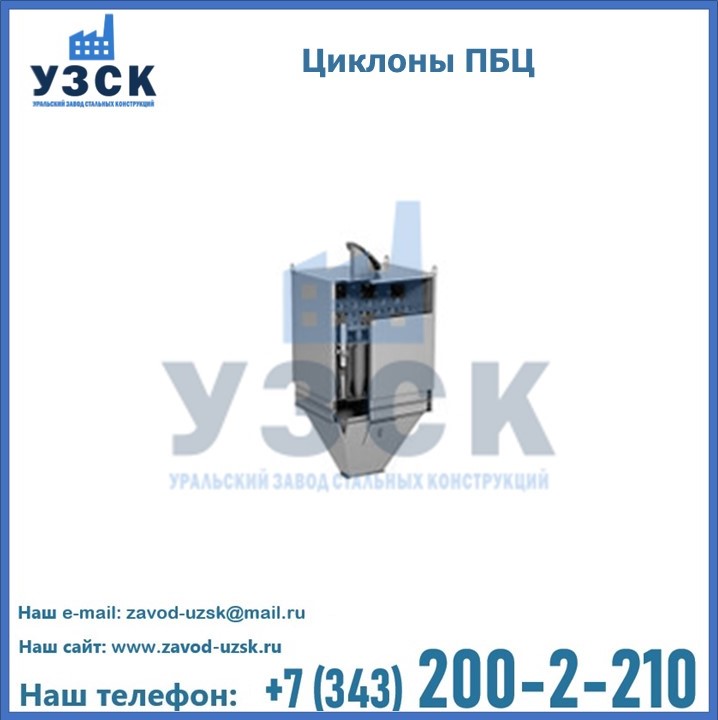 Завод «УЗСК» в Темиртау предлагает приобрести циклоны ПБЦ и прочие устройства, полностью укомплектованные и готовые к эксплуатации. Мы гарантируем соответствие оборудования всем требованиям ГОСТ и ТУ, износостойкость и высокую производительность предлагаемого оборудования. Уральский Завод Стальных Конструкций изготавливает и продает надежное, эффективное и производительное оборудование, имеющее длительную гарантию и большой эксплуатационный ресурс. Если требуется изготовить циклон нестандартных размеров, то такой вариант выполнения заказа тоже предусмотрен, так как предприятие имеет собственные производственные площади и надежных поставщиков. На все поставляемое или производимое оборудование имеются чертежи и прочая техническая документация. Заказать и купить циклоны или прочее оборудование высокого качества и по доступной цене можно через наш сайт или по указанному в разделе «Контакты» телефону.