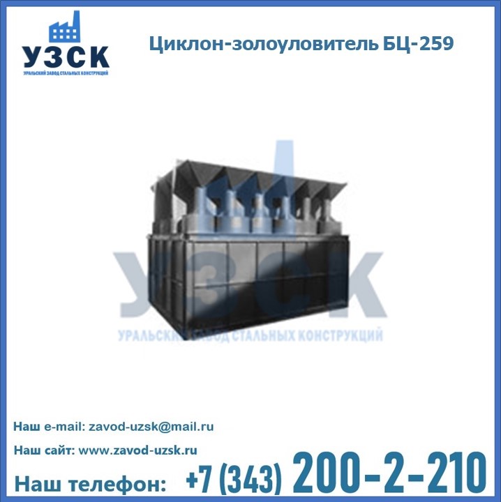Если вы планируете купить то или иное оборудование, например, циклоны-золоуловители БЦ-259, то рекомендуем заказать данный товар на сайте УЗСК. Мы производим и реализуем продукцию высокого качества по приемлемой цене. Эксперты Уральского Завода Стальных Конструкций в Темиртау проконсультируют вас по всем вопросам, помогут сделать выбор и оформить заказ без лишних временных затрат. Мы гарантируем соответствие нашей продукции всем требованиям ГОСТ и ТУ, а также износостойкость и высокую производительность предлагаемого оборудования. Если требуется изготовить циклон нестандартных размеров, то такой вариант выполнения заказа тоже предусмотрен, так как предприятие имеет собственные производственные площади и надежных поставщиков. На все поставляемое или производимое оборудование имеются чертежи и прочая техническая документация. Заказать и купить циклоны или прочее оборудование высокого качества и по доступной цене можно через наш сайт или по указанному в разделе «Контакты» телефону.