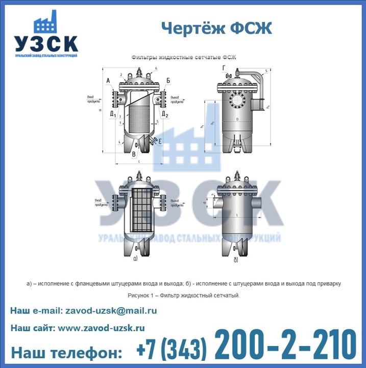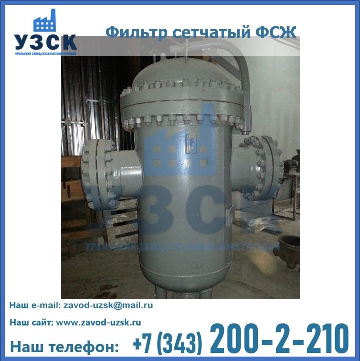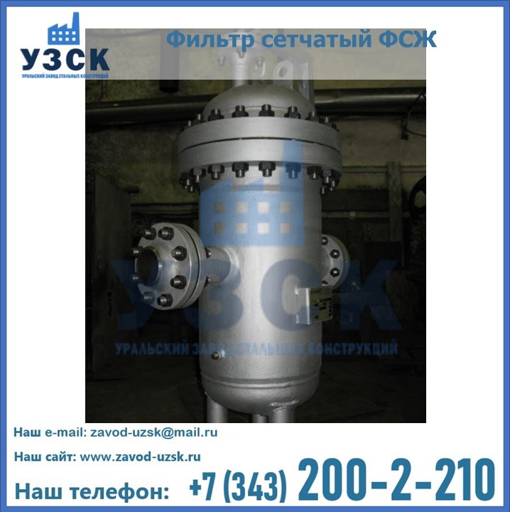 Очистку перекачиваемых жидкостей на предприятиях нефтяной, пищевой, горнорудной, фармацевтической и других отраслей промышленности эффективно выполнять с помощью жидкостного сетчатого фильтра — емкостное оборудование цилиндрической формы со съемной крышкой и элементом фильтрации внутри. Оснащенные им всасывающие линии насосных станций и установок защищены от проникновения твердых частиц в функциональные узлы гидравлической системы. Оборудование служит для перекачивания токсичных, агрессивных и иных эмульсий, суспензий, жидкостей. Купить фильтр сетчатый жидкостный ФСЖ в Темиртау с гарантией производителя предлагает «Уральский завод стальных конструкций». Мы выполняем проектирование и изготовление ФСЖ по индивидуальным требованиям (климатическая зона, транспортируемая жидкость).