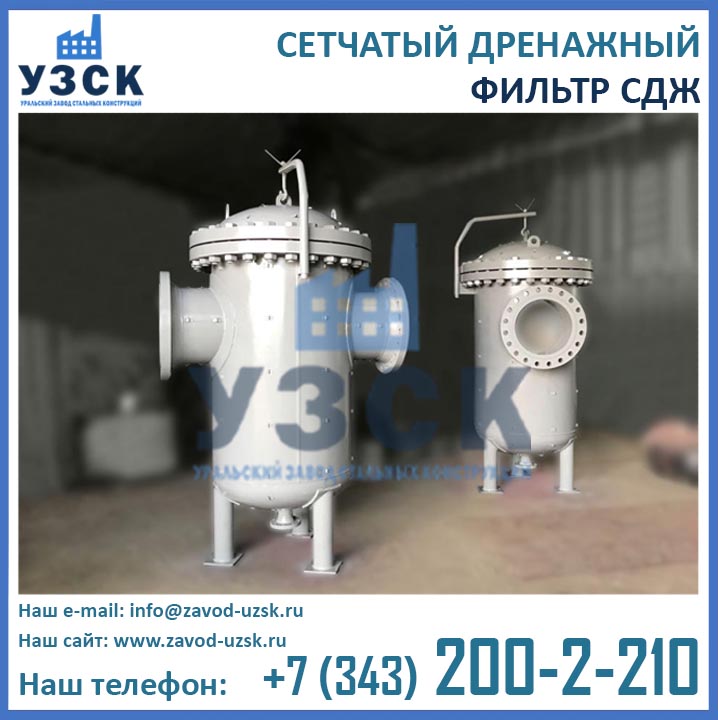 На формирование цены дренажного фильтра влияют следующие факторы: материальное исполнение, конструктивное исполнение, стоимость сырья в момент изготовления, комплектация, необходимость доставки в другой населенный пункт, срочность выполнения работ по изготовлению, прочие предпочтения заказчика. Уральский завод стальных конструкций изготавливает фильтры СДЖ-700 любого типового исполнения, а также нестандартные фильтры СДЖ 700 мм по чертежам заказчика или техническому заданию. Дополнительно к фильтрам СДЖ у нас Вы можете заказать сменные фильтрующие элементы любой тонкости фильтрации, ответные фланцы, прокладки и крепеж. По запросу изготавливаем также фильтры СДЖ-К-700 с концевым затвором. Для того чтобы узнать какова цена на фильтр СДЖ Ду700 в Темиртау с необходимыми Вам характеристиками, отправьте запрос в отдел продаж завода УЗСК по координатам, указанным в разделе «Контакты».