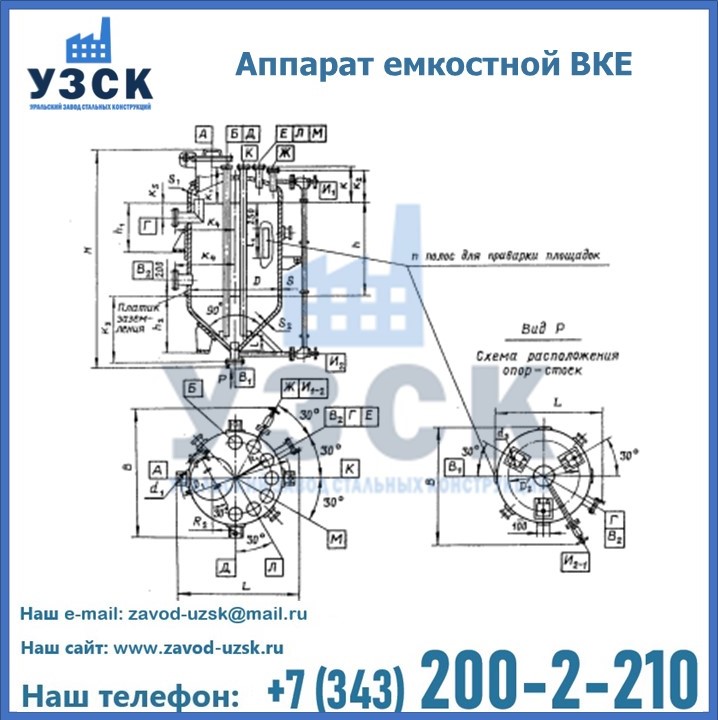Емкостные аппараты ВКЭ представляют емкость с эллиптической крышей и коническим днищем. аппарат может использоваться в Темиртау для приема и хранения жидкостей и взрыво- и пожароопасных веществ. Создаваемое давление не должно превышать 0,6; 1,0 МПа. Емкости ВКЭ выполняются как цельносварные. Используется марка стали, отвечающая степени агрессивности продукта и температуре эксплуатации.